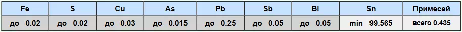 Олово марки О2, известное также, как олово высокой степени чистоты. Обозначается символом Sn (от латинского "stannum"). Содержание данного металла в марке О2 составляет не менее 99,5%. Так же присутствуют следовые количества других веществ, таких как: свинец (Pb), медь (Cu) и железо (Fe).